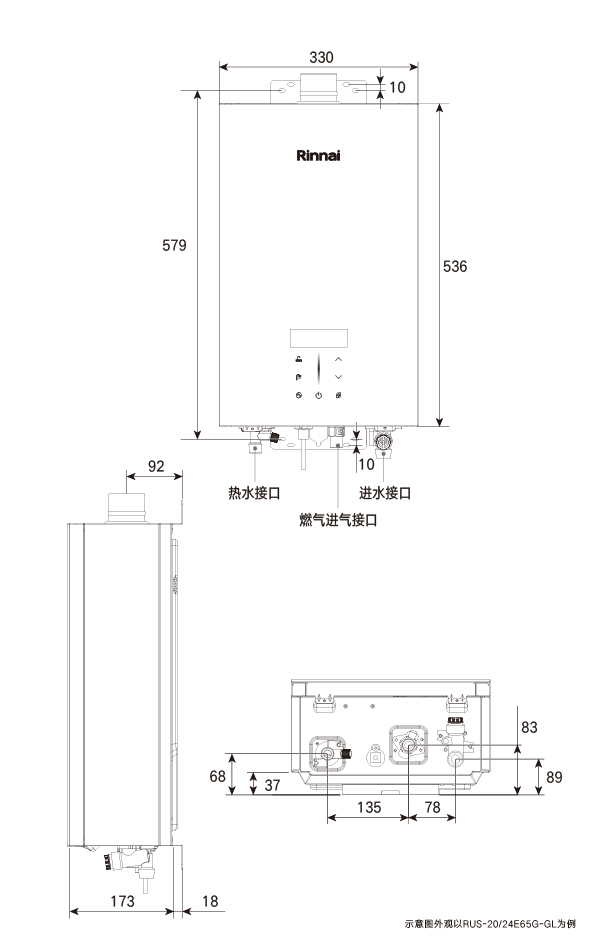 外形尺寸(mm) : (W)330×(H)536×(D)173