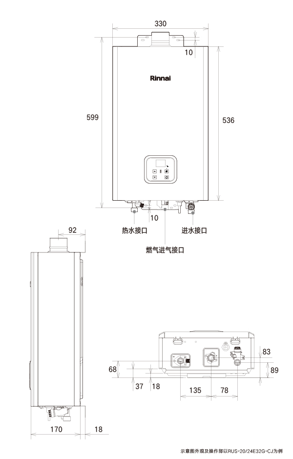 外形尺寸(mm) : (W)330×(H)536×(D)170